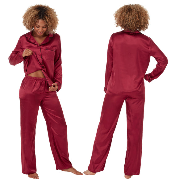Plain Hot Pink Sexy Silky Shiny Satin Pyjamas PJs Jammies Pajamas Set Lingerie PLUS SIZE