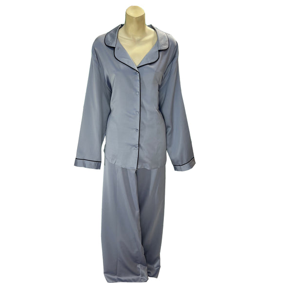 Sexy Silky Shiny Satin Pastel Blue Floral Pyjamas PJs Jammies Pajamas Set PLUS SIZE