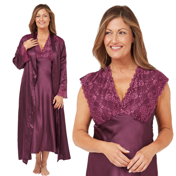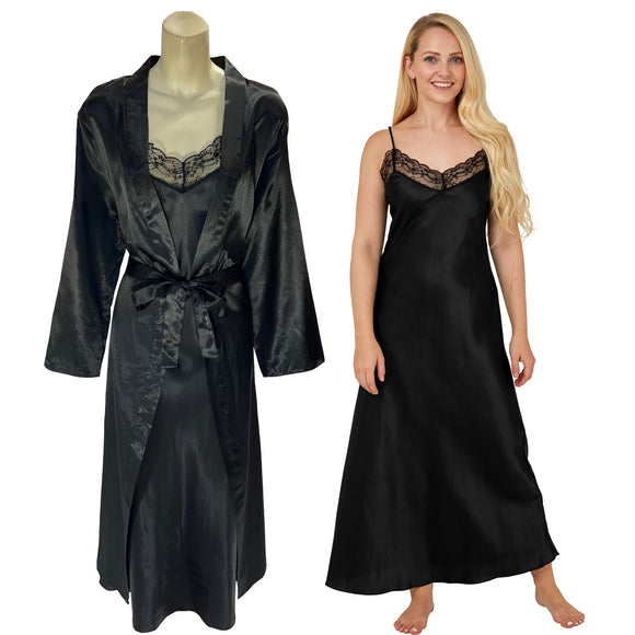 Plus size satin wrap with a matching nightdress in UK dress sizes 20, 22, 24, 26, 28, 30, 32, 34