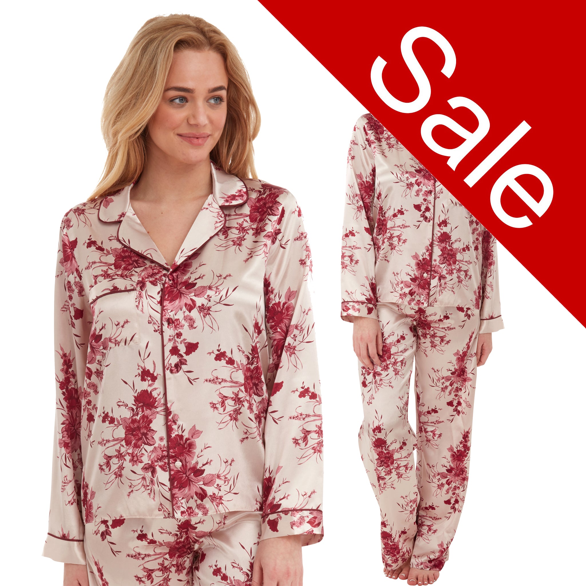 Sale Sexy Silky Shiny Satin Gold Red Floral Pyjamas PJs Jammies Pajamas Set PLUS SIZE
