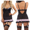 Sexy Black Dress Chemise Babydoll Nightie with Rara Skirt Matching Thong Negligee Lingerie