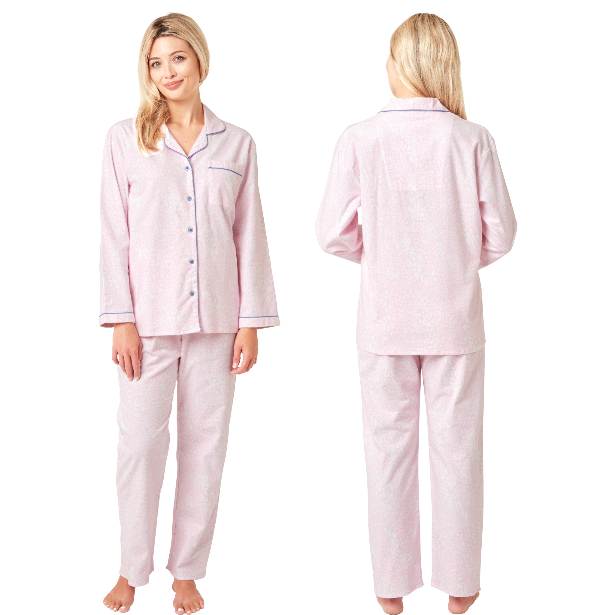 Light Pink Leopard Print Flannelette Wincey PJs Pyjama Set 100% Cotton PLUS SIZE