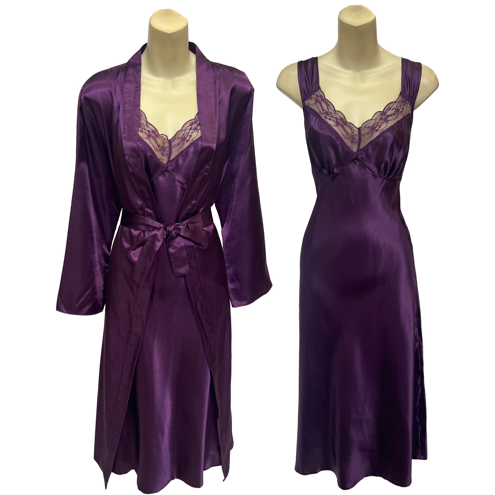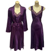 Long Full Length Purple Sexy Satin & Lace Fitted Chest Chemise & Wrap Set