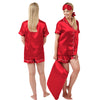Plain Bright Red Silky Shiny Sexy Satin Shorty Pyjamas PJs Jammies Pajamas Set Negligee